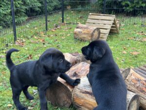 Die ersten zwei Autofahrten und ein erster kleiner Ausflug in die große weite Welt haben wir schon unternommen. Und das werden wir in der letzten Woche bei uns auch nochmal machen. Alle Welpen sind ohne zu zögern aus der Box gekommen und haben ihre Umgebung erkundet. Der Radius war in einem schönen Rahmen und auf den Komm-Pfiff kamen sie förmlich angeflogen. Sehr süß.